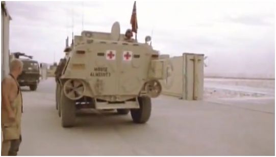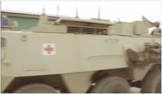 Here is a U.S. Army Stryker with ambulance markings. (In Afghanistan the vehicle would be desert tan.)